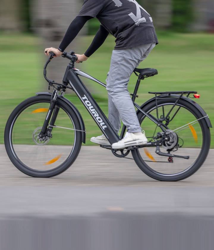 Ich bin absolut begeistert von meinem Toroll J1 Pro! Die hydraulischen Scheibenbremsen geben unglaublich viel Sicherheit – sanftes und kraftvolles Bremsen bei jedem Wetter. Die Federung mit Lockout ist bahnbrechend; ich entriegele sie für meinen holprigen Arbeitsweg und sperre sie für effizientes Fahren auf den sanften Abschnitten nach Hause.