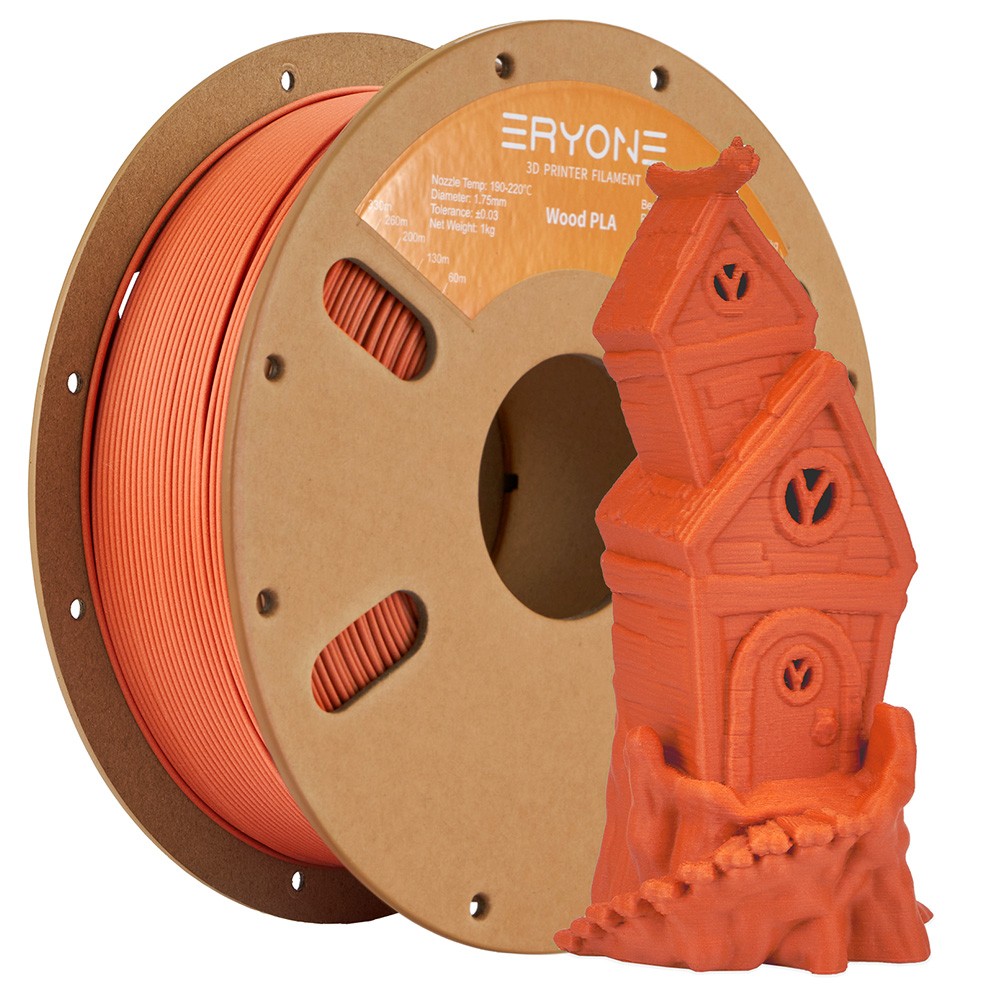 Eryone-Holzfilament verbirgt Schichtlinien gut und hat eine matte Oberfläche, geeignet zum Drucken aller Arten von Dekorationen, Spielzeugen und Schreibtischornamenten.