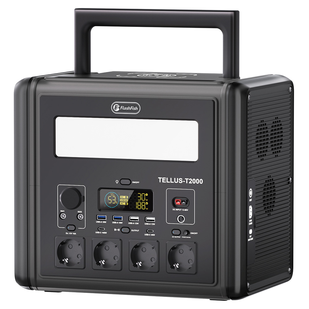 Flashfish T2000 2000W Tragbare Powerstation, 1536Wh LiFePO4 Batterie, 4000W Spitzenleistung, 1500W Schnelles AC-Laden, 14 Ausgänge, für Notstromversorgung zu Hause & im Freien