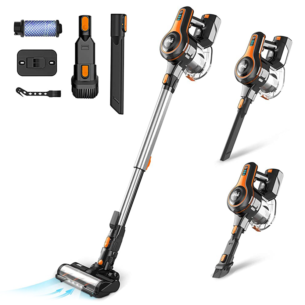 INSE S600 Kabelloser Stabstaubsauger, 25 kPa Saugleistung, 40 Min. Laufzeit, LED-Licht, Orange
