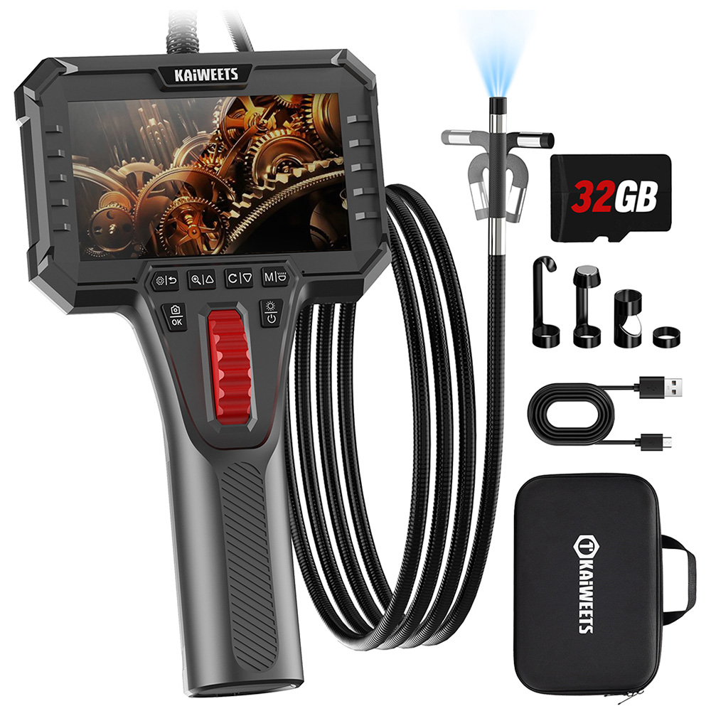 Dieses schwenkbare Endoskop verfügt über eine um 210° bidirektional biegbare Kamerasonde, die sich bequem über ein Präzisionsrad steuern lässt. Navigieren Sie mühelos durch enge Motorräume, Klimaanlagen, Rohrleitungen oder Maschinen – ein Umpositionieren der Sonde ist nicht erforderlich. Ideal für Profis, die bei schwer zugänglichen Inspektionen Flexibilität und Genauigkeit benötigen.