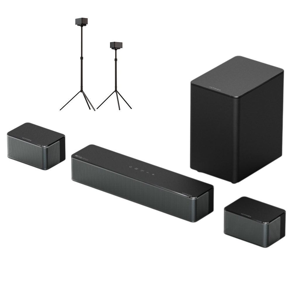 Genießen Sie kristallklare Dialoge und satten, raumfüllenden Klang mit dem Ultimea 5.1 Soundbar-System. Es verfügt über drei Frontkanäle, zwei Surround-Lautsprecher und einen kabellosen Subwoofer und liefert präzisen, raumfüllenden Klang. Dank Dolby Atmos wird jeder Ton präzise um Sie herum platziert und bietet eine umfassende Surround-Sound-Atmosphäre.